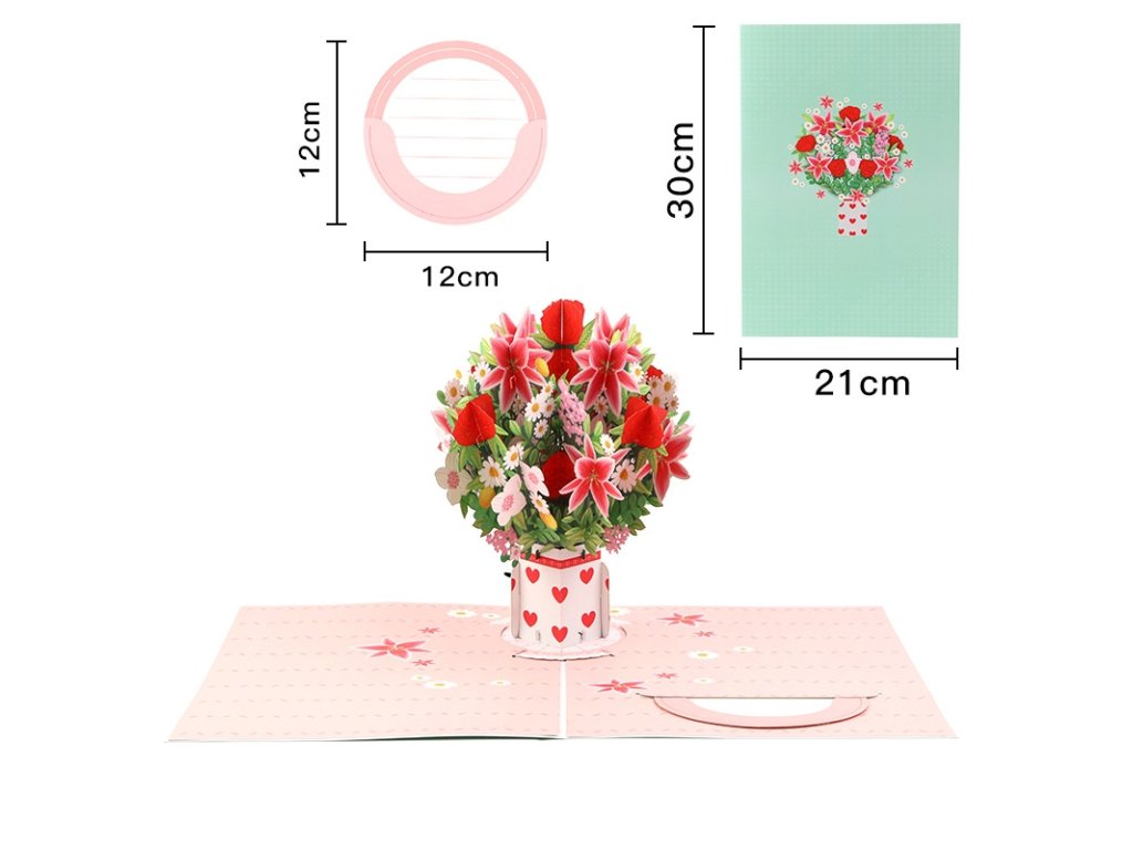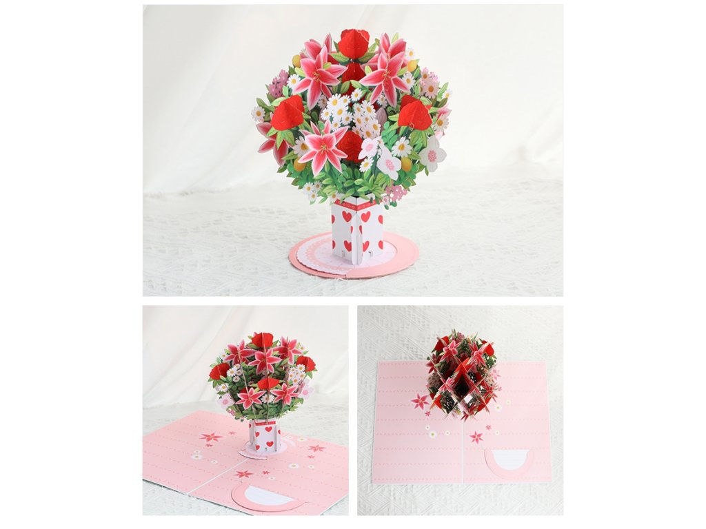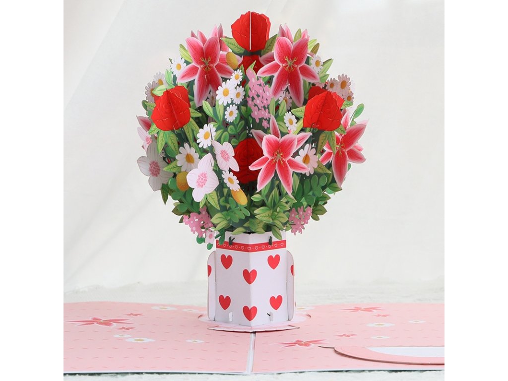 - Wow efekt zaručen – precizní 3D pop-up mechanismus vytvoří při otevření bohatou prostorovou kytici.