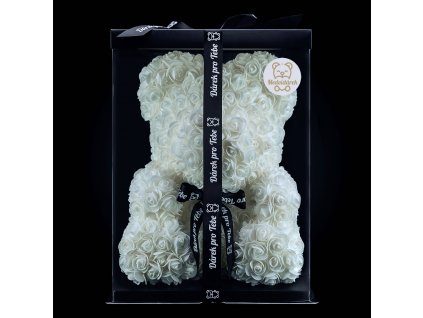 Tito nádherní medvídci, kvalitně a precizně vyrobení z pečlivě vybíraných umělých růží, vynikají svou impozantní výškou 40 cm, která z nich dělá výrazný symbol lásky a elegance.