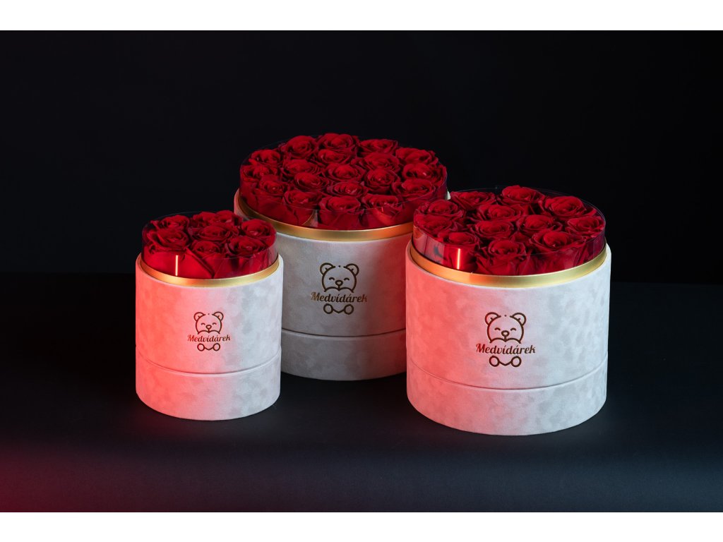 Když chcete udělat dojem, na který se nezapomíná. Náš největší box s devatenácti stabilizovanými růžemi je definicí luxusu a hojnosti. Hustě vázané květy vytvářejí nádhernou sametovou plochu, která láká k doteku. Tento box není jen dárkem, je to designový doplněk, který okamžitě promění atmosféru v místnosti. Pro ty, kteří se nespokojí s málem a chtějí darovat to nejlepší z nabídky Medvídárek.