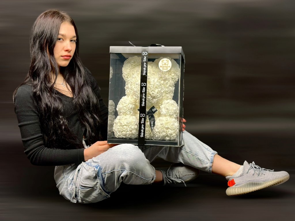 MEDVÍDÁREK BIG Classic je velký parfémovaný medvídek z růží ve velikosti 40cm. Medvídek z růží je ideálním dárkem pro ženu na valentýna, narozeniny či jako svatební dekorace.