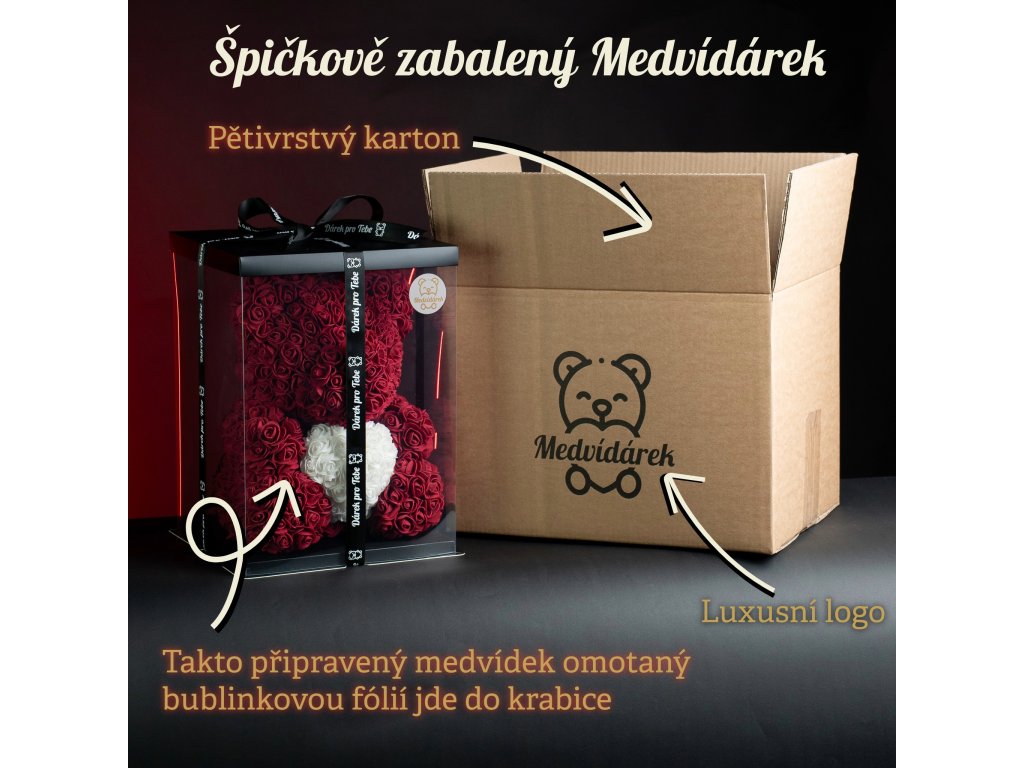 MEDVÍDÁREK BIG Classic je velký parfémovaný medvídek z růží ve velikosti 40cm. Medvídek z růží je ideálním dárkem pro ženu na valentýna, narozeniny či jako svatební dekorace.