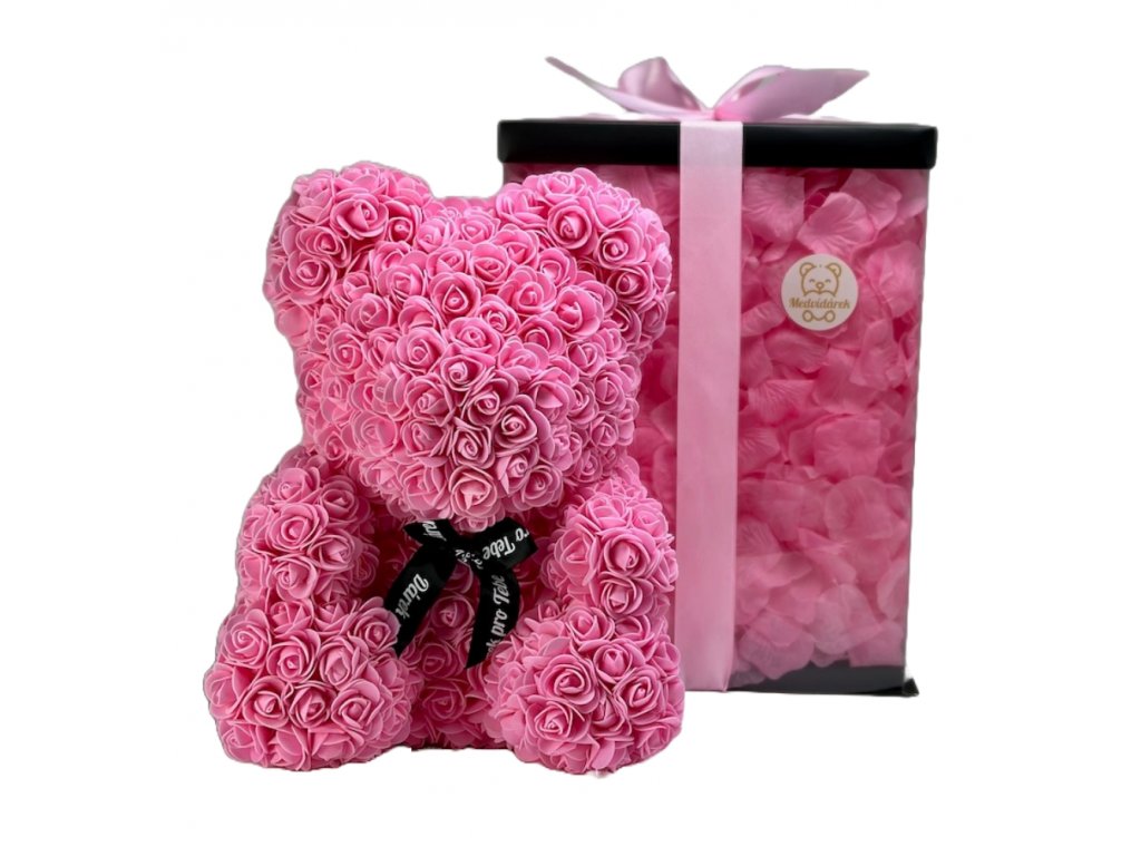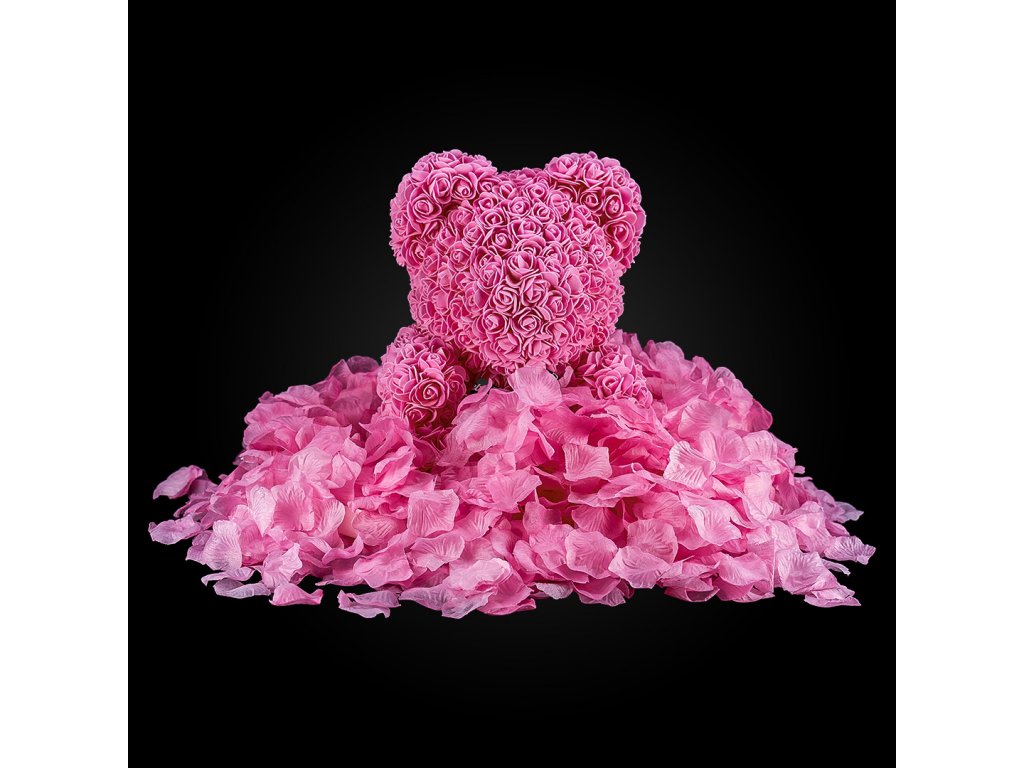 MEDVÍDÁREK BIG Romantic je velký parfémovaný medvídek z růží ve velikosti 40cm zasypaný růžovými okvětními lístky. Medvídek z růží je ideálním dárkem pro ženu na valentýna, narozeniny či jako svatební dekorace.