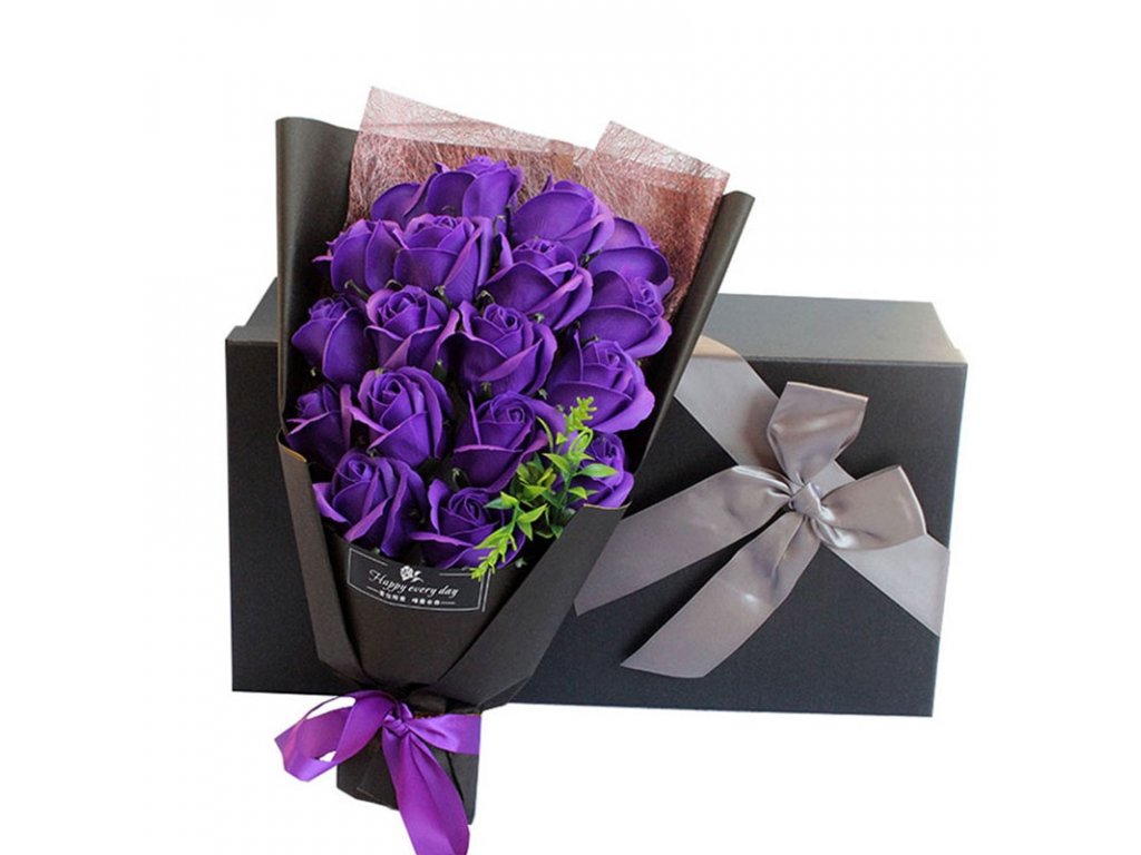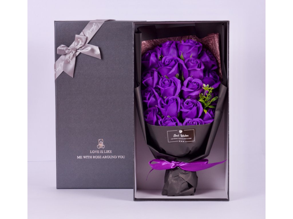 Dárkový box s krásným a voňavým pugetem z mýdlových růží. Krásný dárek, který potěší každou něžnou duši.