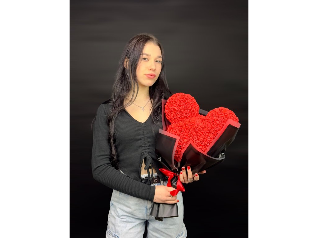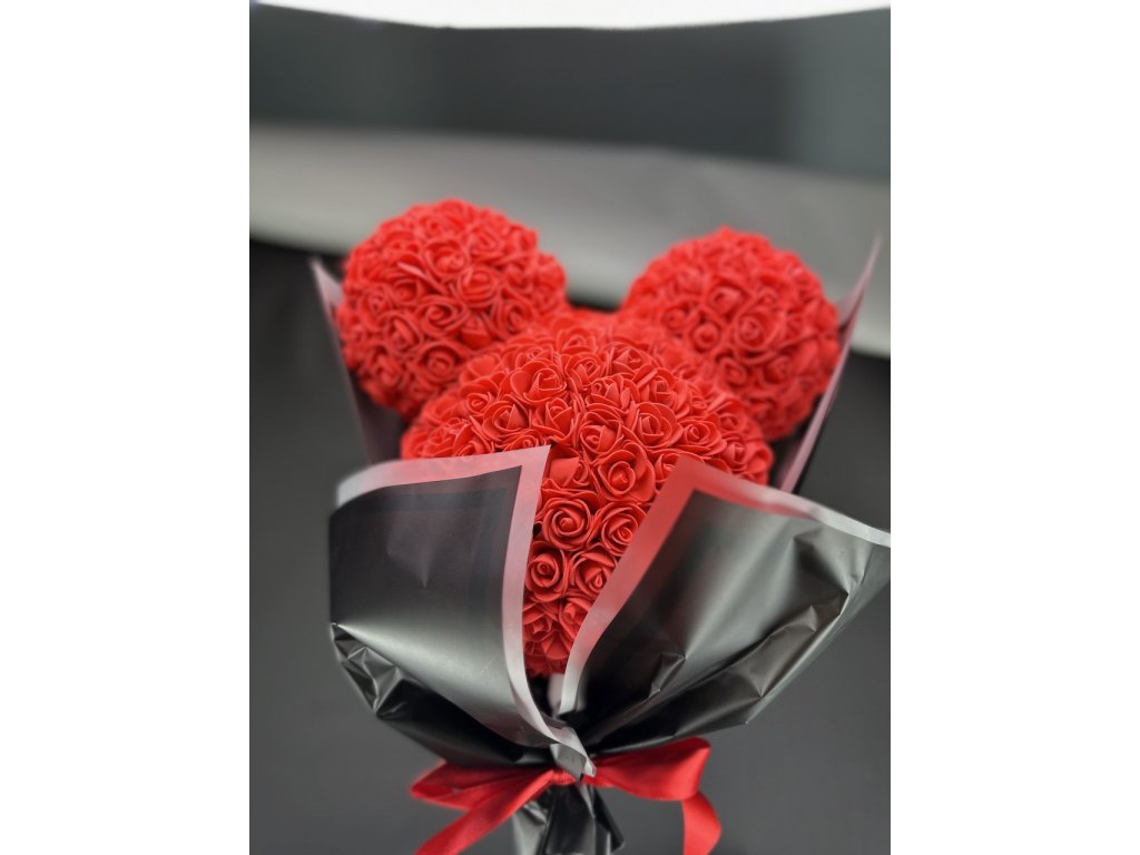 MEDVÍDÁREK pugét z růží je luxusní dárek ve tvaru hlavy Mickey.