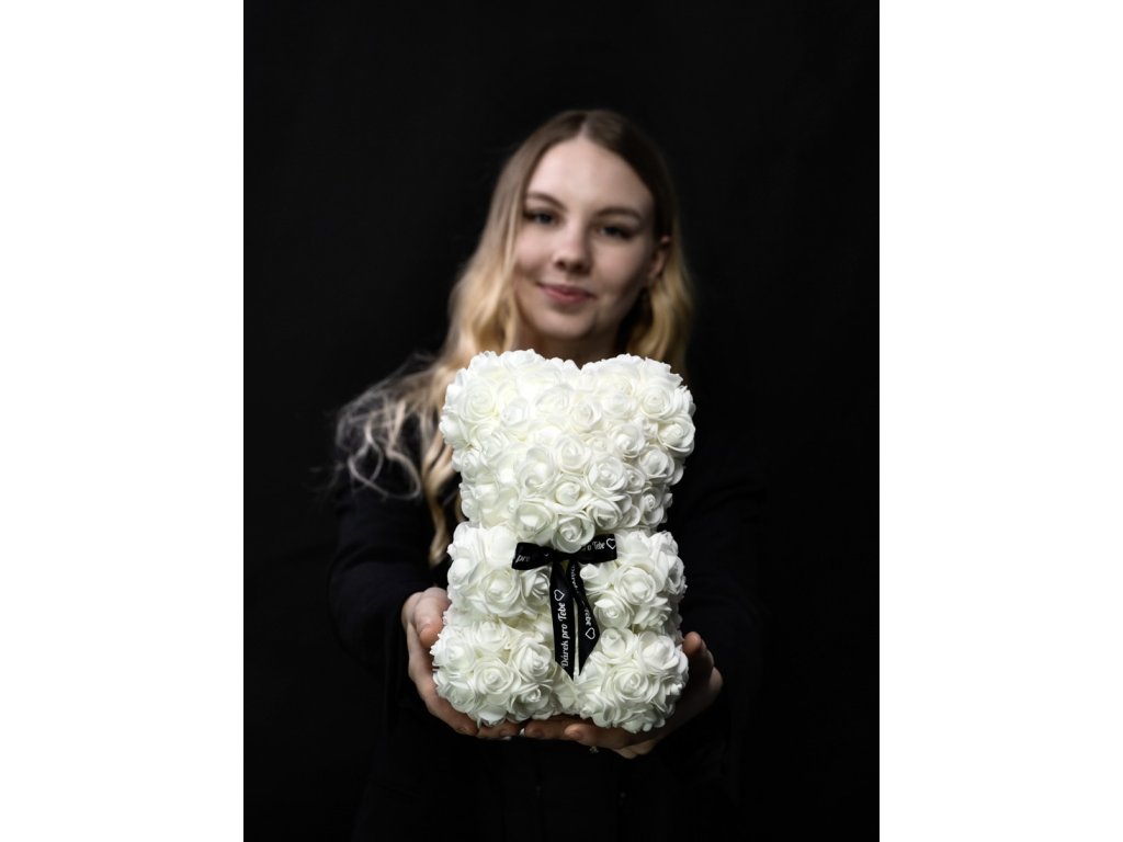 MEDVÍDÁREK Simple je parfémovaný medvídek z růží ve velikosti 25cm je dostupný ve třech barvách, tmavě červená, růžová a bílá. Medvídek z růží je ideálním dárkem pro ženu na valentýna, narozeniny či jako svatební dekorace. Verze Simple bez dárkové krabičky.