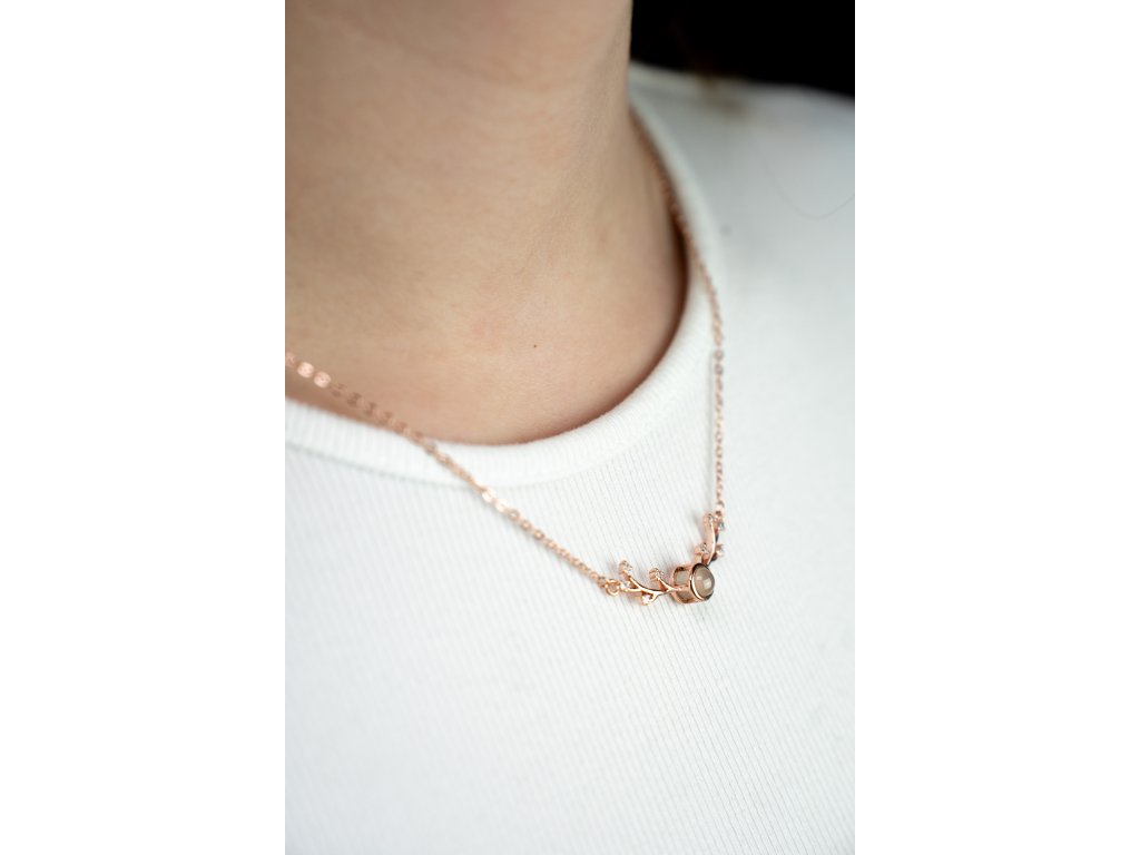 Krásný náhrdelník v růžově zlaté barvě. Balen v černé dárkové krabičce (viz foto).