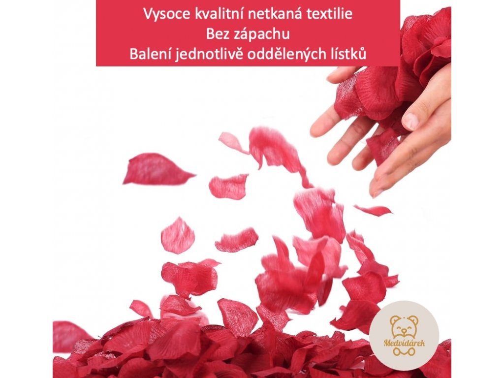 Balení obsahuje 400 ks hedvábných jednotlivě oddělených okvětních lístků (není nutné ručně odlupovat kus po kusu) vyrobených z kvalitní netkané textilie.