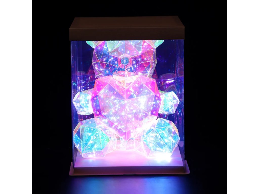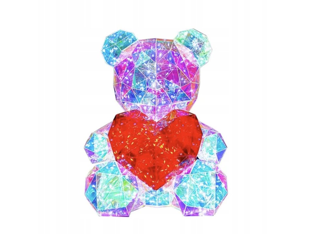 LED svítící medvídek s červeným srdcem, velikost 25cm.