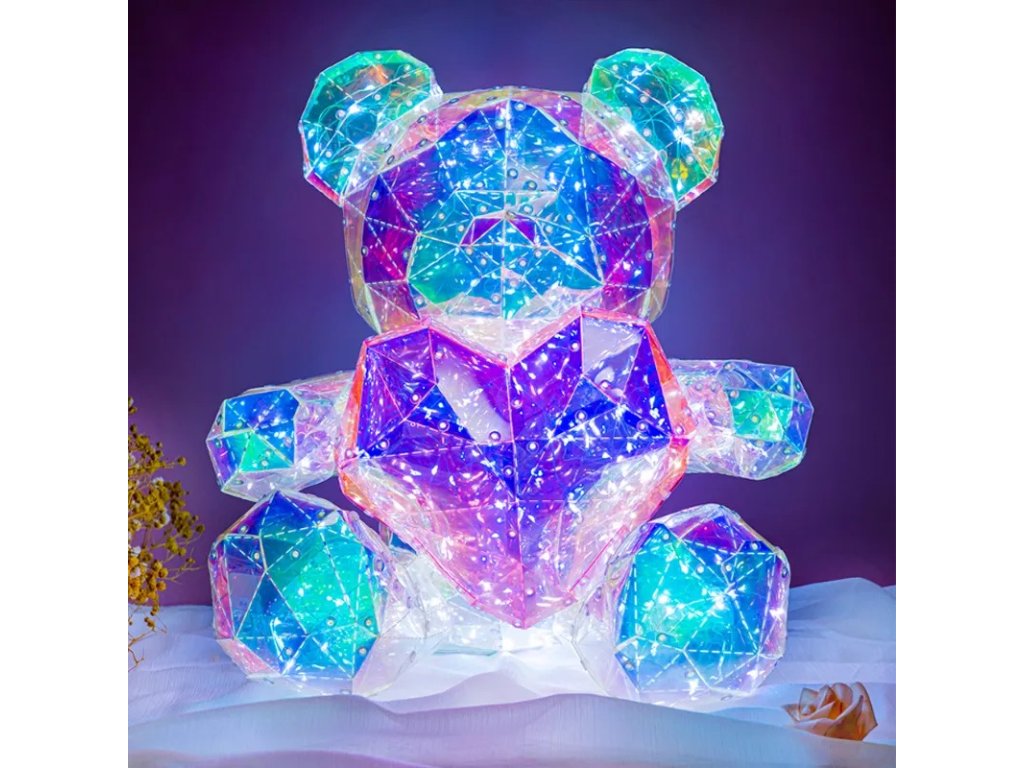 LED svítící medvídek s růžovým srdcem, velikost 25cm.